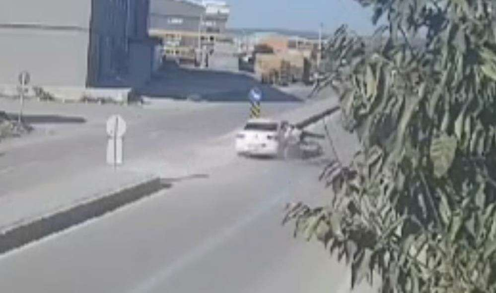 Bursa'nın İnegöl ilçesinde meydana gelen kazada otomobilin çarptığı bisiklet sürücüsü ağır yaralandı. Kaza anı bir işyerinin güvenlik kamerasına saniye saniye yansırken, olay yerinden kaçan otomobilin sürücüsü 5 saat sonra yakalandı.