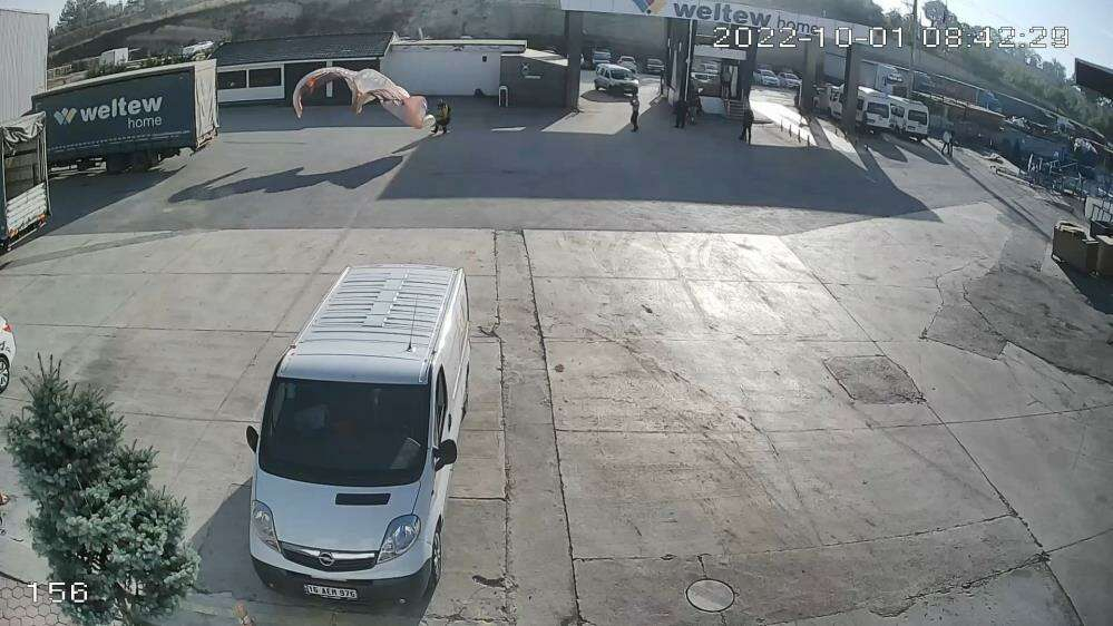 Bursa’da düzenlenen Adrenalin Festivaline katılan paraşüt tutkunu fabrika işçisi, yaklaşık 2200 metreden atlayarak festivalde belirlenen iniş alanı yerine çalıştığı fabrikanın bahçesine indi. Arkadaşını havada gören mesai arkadaşları ise o anları cep telefonu kamerasıyla saniye saniye kaydetti.