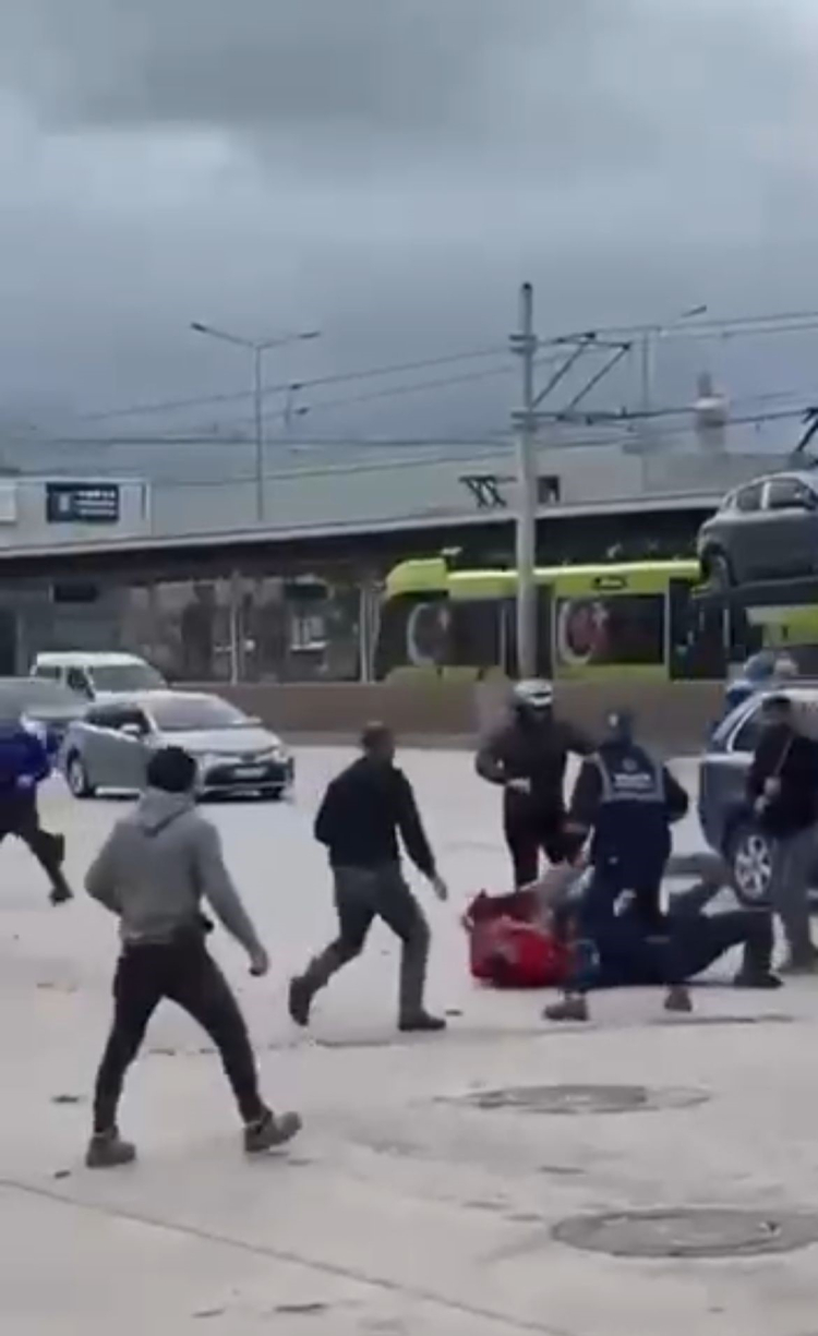 Bursa’da aralarında husumet bulunan iki grup cadde üzerinde karşı karşıya gelince kavgaya tutuştu. Sopaların ve yumrukların havada uçuştuğu kavga anı kameraya yansırken, bazıları kendini korumak için kaskla kavgaya dahil oldu.