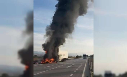 Bursa'da seyir halindeki tır alevlere teslim oldu.