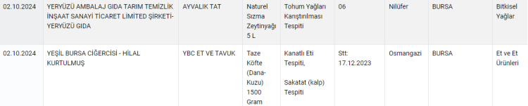 Tarım ve Orman Bakanlığı tarafından Bakan Yumaklı'nın bilgisini verdiği taklit-tağşiş yapılan ve sağlığı tehlikeye düşürebilecek gıdalar listesi, ilgili web sitesi üzerinden paylaşıldı. Peki Bursa’da hangi firmalar yer aldı.