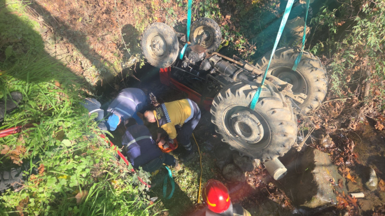 Bursa'nın Orhangazi ilçesinde köprüden dere yatağına uçan traktörde sıkışan yaşlı adam, vinç yardımıyla kurtarılıp hastaneye kaldırıldı.