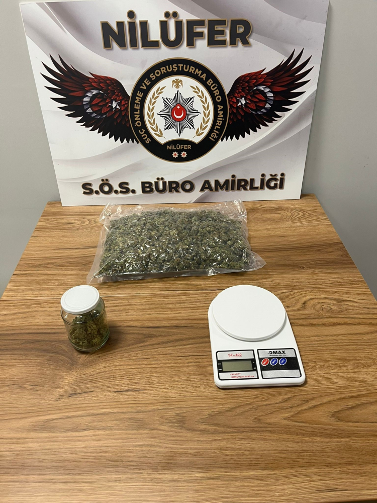 Nilüfer İlçe Emniyet Müdürlüğü Suç Önleme ve Soruşturma Büro Amirliği ekiplerince, uyuşturucu veya uyarıcı madde imal ve ticareti yapıldığı yönünde ihbar gelmesi üzerine çok yönlü saha çalışmaları gerçekleştirildi. Yürütülen çalışmalar neticesinde bahse konu şüphelilerin F. D. ve M.Ç. isimli şahıslar olduğu tespit edilerek kullandıkları araç ile birlikte gözaltına alındılar. Araçta yapılan aramada; 3 kilogram esrar maddesi ele geçirildi. Devam eden çalışmalarda aynı konu ile bağlantılı F.O. , A.M.Y. ve M.B. isimli üç şüpheli daha tespit edilerek gözaltına alındı. Şahıslara ait ikamette yapılan aramada; hassas terazi ile 562 gram esrar maddesi ele geçirildi.
