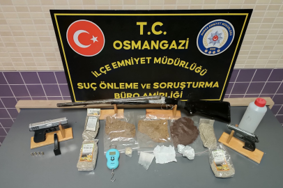 Osmangazi İlçe Emniyet Müdürlüğü Osmangazi Suç Önleme ve Soruşturma Büro Amirliği ekipleri, bir süredir peşinde olduğu uyuşturucu tacirlerine yönelik operasyon düzenledi. Yapılan operasyonda 6 şüpheli gözaltına alınırken, şahısları evlerinde yapılan aramada 1 adet hassas terazi, 1 adet çifte tüfek, 2 adet tabanca, 16 bin lira nakit para, 8 adet cep telefonu ve 512 gram uyuşturucu madde ele geçirdi. Şüphelilerin emniyetteki işlemlerinin sürdüğü öğrenildi.