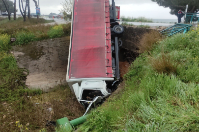Bursa'da virajı alamayan kamyon dereye uçtu