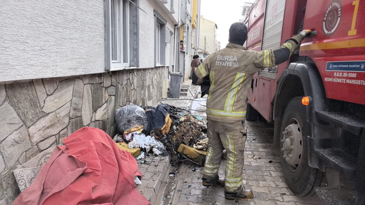 Bursa'da yanan evden 2 çocuğu itfaiye ekipleri kurtardı