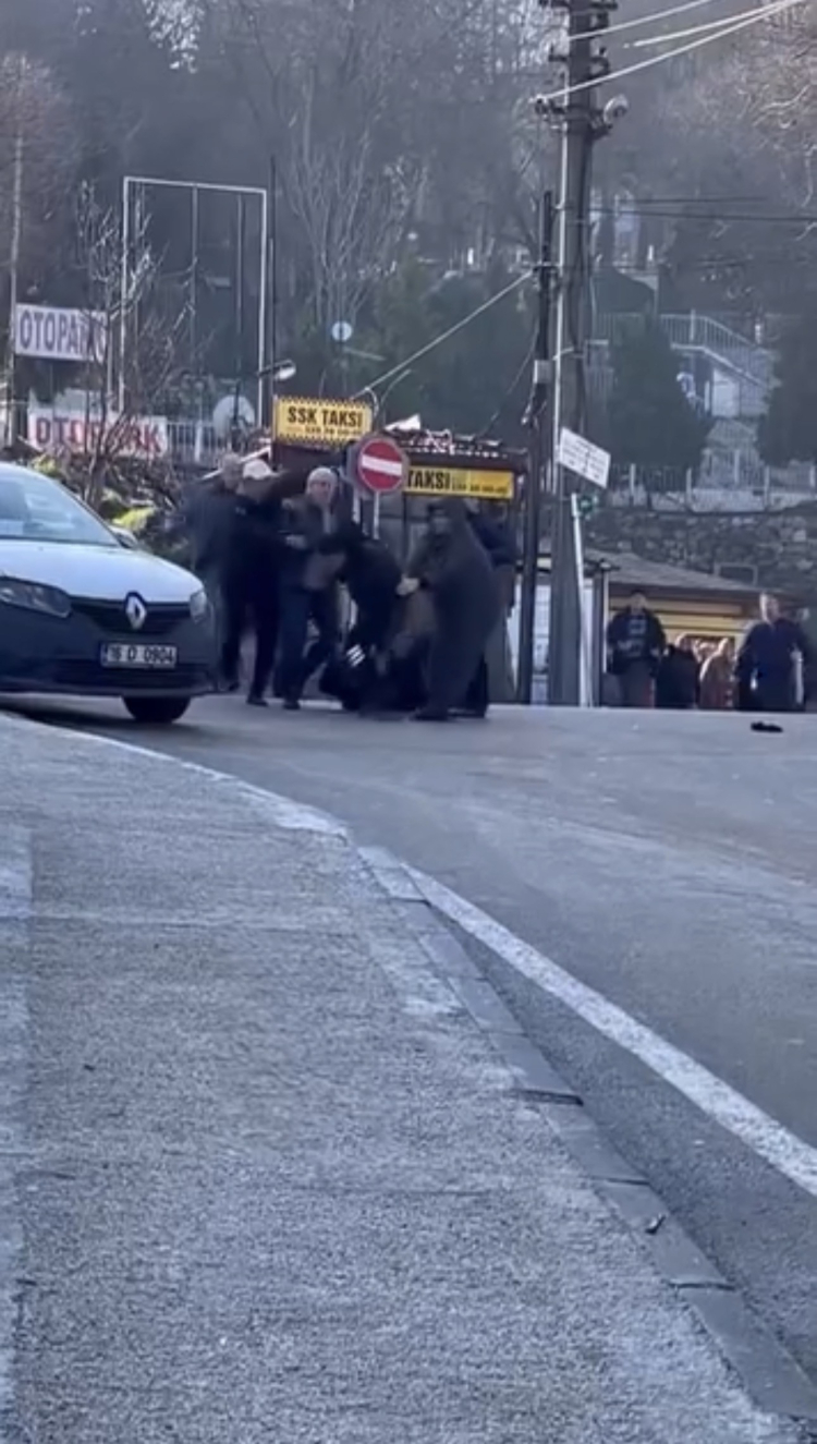 Cadde ortasında birbirine saldıran iki sürücüyü çevredeki vatandaşlar güçlükle ayırdı. Yaşanan arbede sırasında tarafların birbirine tekme ve yumruklarla saldırdığı anlar cep telefonu kamerasına yansıdı.
