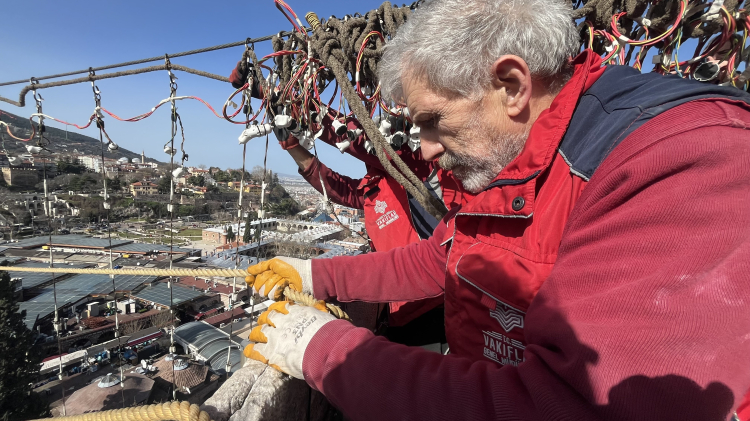 Kültür ve Turizm Bakanlığı Vakıflar Genel Müdürlüğü İstanbul'daki mahya atölyesinde hazırlanarak Bursa'ya getirilen ‘Kul hakkından sakın’ ustalarca caminin minareleri arasına asılmaya başlandı. Yaklaşık 8 saat süren çalışmada önce mahya asılacak minareler arasına halatlar çekildi. Ancak şiddetli rüzgar, zaman zaman ekiplere zor zamanlar yaşattı.