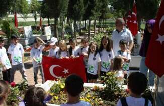 Bursa’da bulunan Orhan Kara ilkokulu öğrencileri şehitlikleri ziyaret ederek dualar okuyup şiirler söyledi. Şehitliklere yapılan ziyaretlerde şehit yeğeni de dayısının kabrini ziyaret ederek şiir okudu.