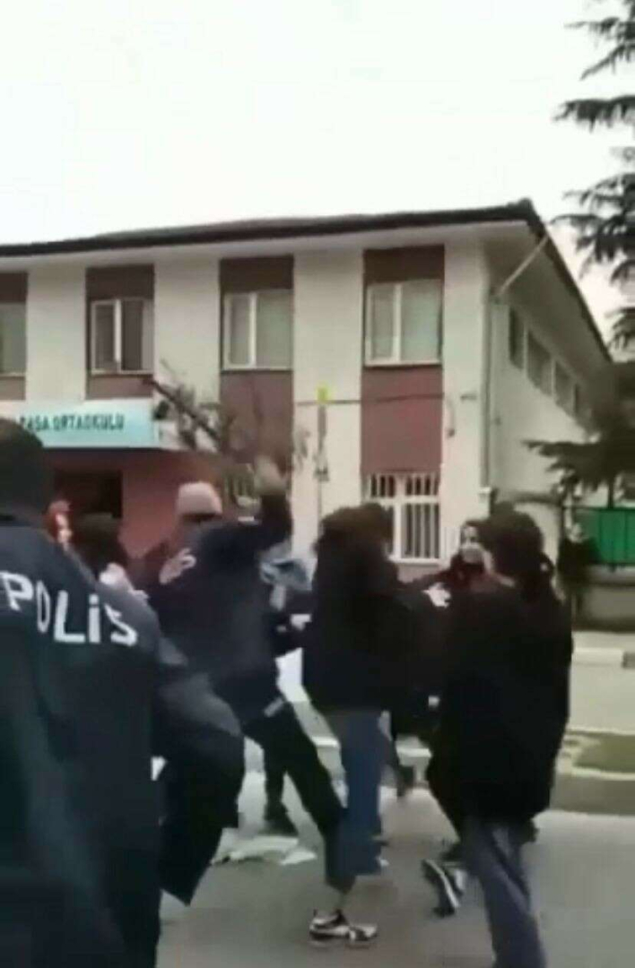 Bursa’da liseli kızların saç saça kavgasını polis ekipleri copla müdahale ederek ayırdı. Arkadaşlarının ise kavgayı ayırmayıp seyretmesi dikkat çekerken, o anlar kameraya yansıdı.