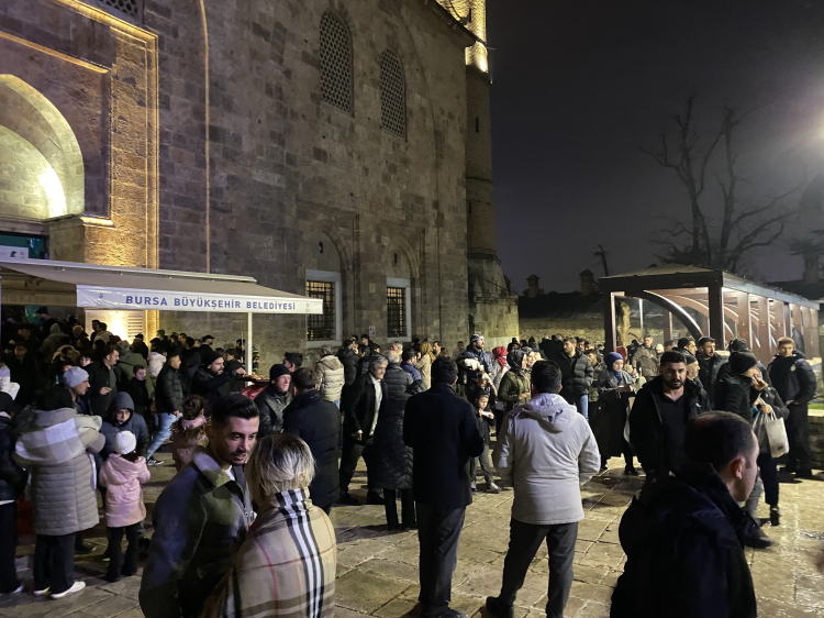 Öte yandan Bursa Büyükşehir Belediyesi tarafından kandil dolayısıyla cami çıkışında vatandaşlara çeşitli ikramlarda bulunuldu. Yapılan ikramlar cemaatten memnuniyetle karşılandı. Program, yatsı namazının eda edilmesinin ardından edilen dualarla sona erdi.