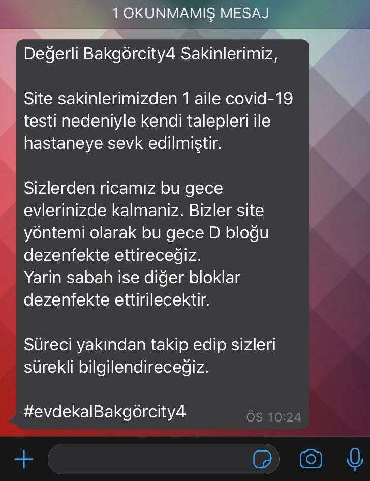 Değerli BakgörCity4 sakinlerimiz, site sakinlermizden bir ailede covid-19 testi nedeniyle kendi talepleriyle hastaneye sevk edilmiştir.