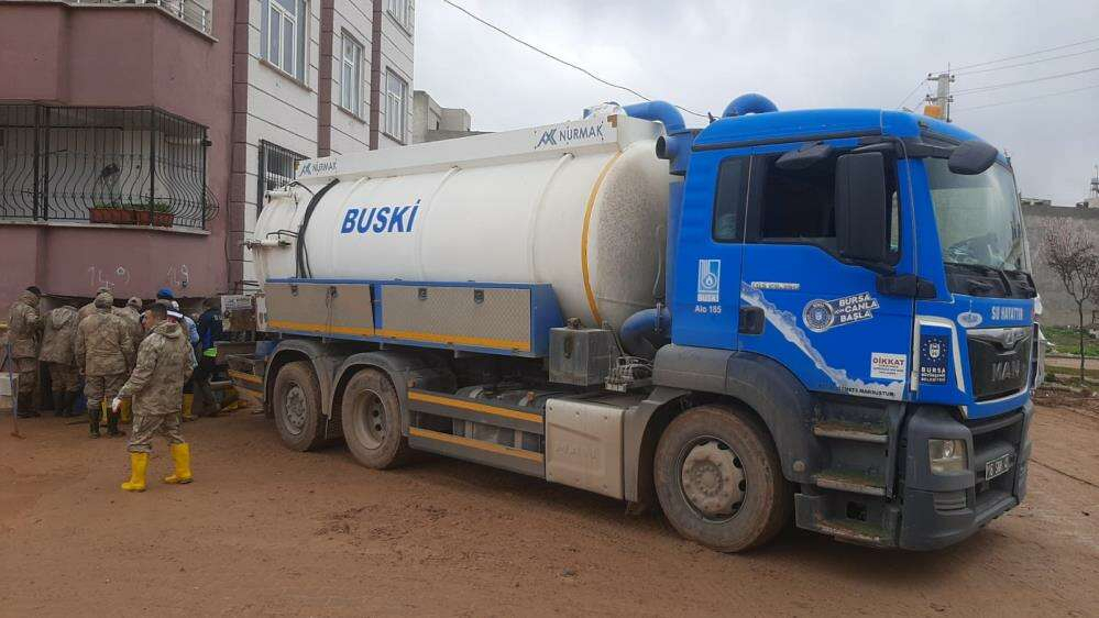 Asrın felaketinde deprem bölgelerinde canla başla çalışan Bursa Büyükşehir Belediyesi BUSKİ Genel Müdürlüğü ekipleri, selin vurduğu Şanlıurfa’da da yaraları sarmak için yoğun bir mesai harcıyor.