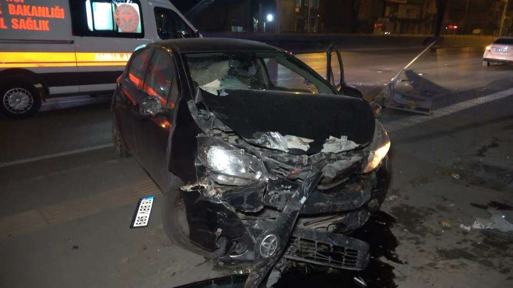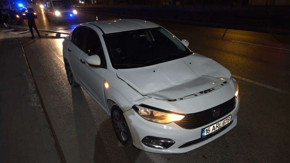 Bursa’da aracının direksiyon hakimiyetini kaybeden sürücü önce park halindeki 2 araca çarptı, ardından elektrik direğine vurarak durabildi.