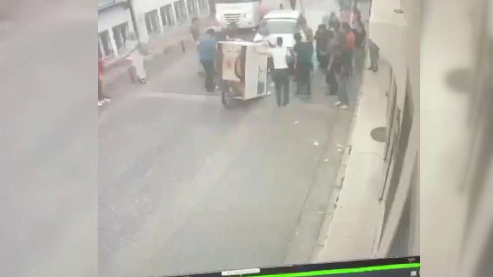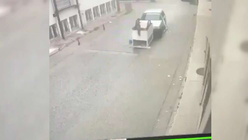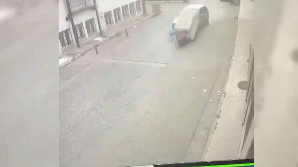 Kaza anı bir işyerinin kamerasına yansıdı. Görüntülerde seyyar aracı ile ilerleyen şahsa sokağın köşesinden dönerek gelen bir otomobil çarptı. Çarpma sonucu seyyar satıcının devrilen ekmek teknesinin altında kalması ve yaralanması dikkat çekti. Kaza sonrası otomobilden inen kadın sürücünün şoka girdiği ve çevreden çığlık atarak yardım istediği anlar da kameraya yansıdı.