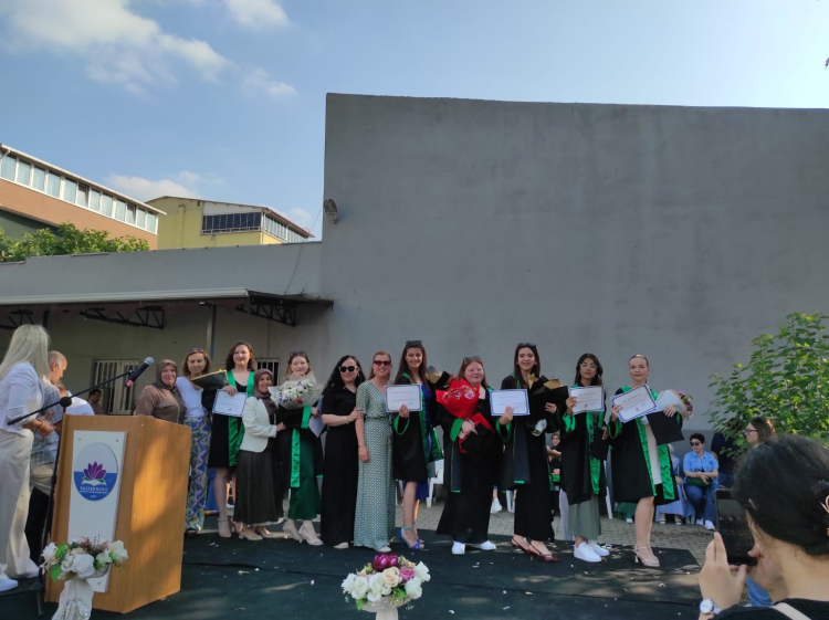Bursa'nın Mustafakemalpaşa ilçesinde 2023 yılında depreme dayanıksız olduğu gerekçesiyle kapatılan Nilüfer Hatun Kız Mesleki ve Teknik Anadolu Lisesi öğrencileri, bu yıl da mezuniyetlerini kendi okullarının bahçesinde gerçekleştirdi.