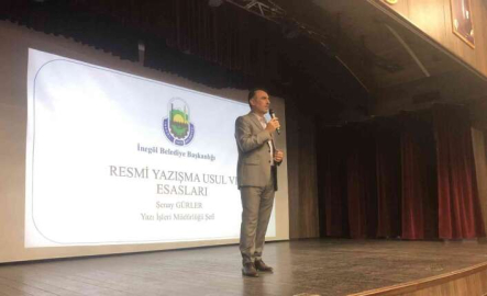 İnegöl Belediyesi tarafından hizmet içi eğitimler çerçevesinde personele yönelik ’“Resmi Yazışma Kuralları’ eğitimi düzenlendi.