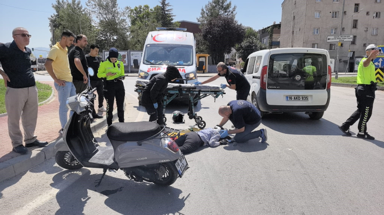 Bursa'nın İnegöl ilçesinde meydana gelen kazada hafif ticari araç ile çarpışan motosikletin sürücüsü yaralandı.