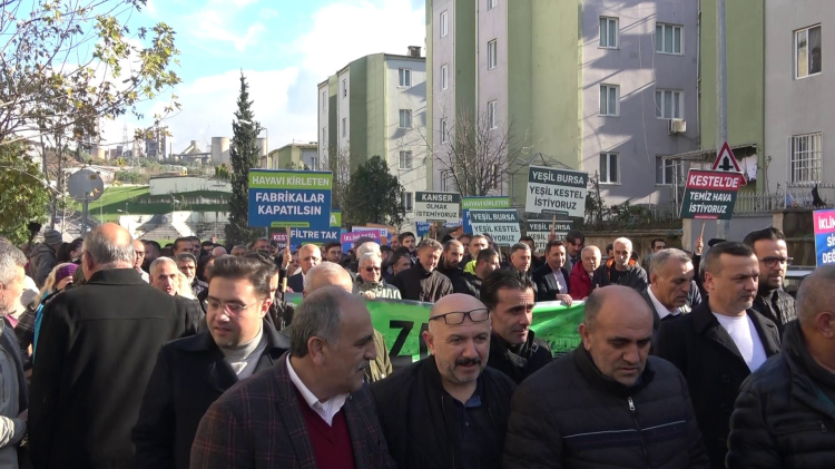 Bursa’nın Kestel ilçesinde vatandaşlar ilçede yürüyüş yaparak kirli havayı protesto etti. İlçede havayı kirleten fabrika bacaları için slogan atan vatandaşlar artık zehirli hava solumak istemediklerini söyledi.