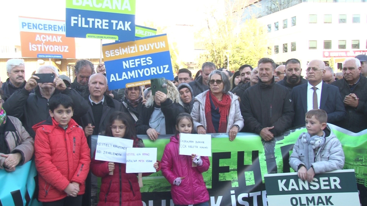 Bursa’da Kestel Çevre Platformu kent merkezinde basın açıklaması gerçekleştirdi. İlçedeki fabrika bacaları sebebiyle kirli hava soluduklarını söyleyen vatandaşlar ayrıca, KOAH, amfizem, akciğer kanseri gibi hastalıkların ilçede yaygın görülmeye başladığını belirtti.