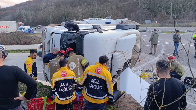 Bursa'nın İnegöl ilçesinde kontrolden çıkarak devrilen beton tankerinin sürücüsü, kaldırıldığı hastanede hayatını kaybetti.