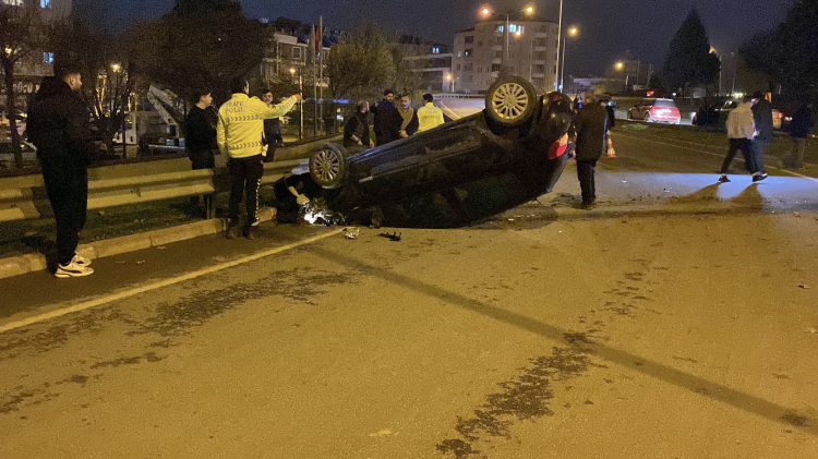 Kaza saat 00.30 sıralarında Bursa-Ankara karayolu üzeri İnegöl girişindeki köprülü kavşak girişinde meydana geldi. Sürücü Safa S.(19) yönetimindeki 16 ADN 415 plakalı otomobil, Alanyurt'a dönüş yaptığı sırada sürücüsünün kontrolünden çıkarak takla attı. Ters dönen araçtaki sürücü kazayı hafif sıyrıklarla atlattı. Kaza yerine 112 Acil Sağlık ve polis ekipleri sevk edildi. Hastaneye gitmeyi reddeden sürücü, ambulansta tedavi edildi.