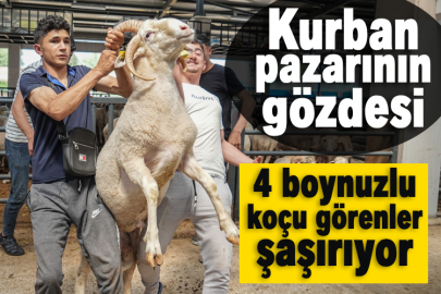 Kurban pazarının gözdesi...4 boynuzlu koçu görenler şaşırıyor