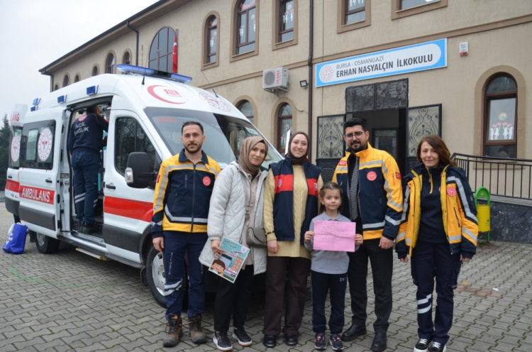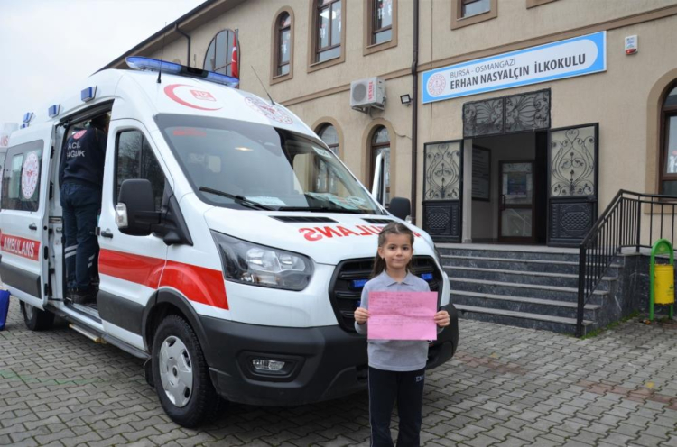 Bursa’da yaşayan Erhan Nasyalçın İlkokulu 1. sınıf öğrencisi Yağmur Şekerci, çok merak ettiği ambulansı yakından görmek için Bursa 112 Ambulans Başhekimliği’ne hitaben bir mektup yazdı. Mektubunda en büyük isteğinin okuluna bir ambulans gelmesi olduğunu belirten Yağmur’un bu isteği, 112 tarafından gerçekleştirilince oldukça güzel görüntüler ortaya çıktı.