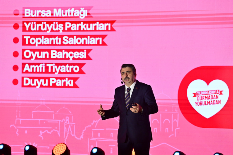 Kentsel dönüşüm noktasında önemli hedefler koyduklarını belirten Başkan Yılmaz; "Göre gelirken ‘Yıldırım İçin Büyük Düşünüyor, Büyük Dönüşüyoruz’ dedik ve 30 bin yeni konut hedefi belirledik kendimize. Hamdolsun şuana kadar 7 bin 500 konut ürettik. 2029 yılına kadar bu sayıyı 30 bine tamamlayacağız. Tabi kentsel dönüşümün tanımını doğru yapmak gerekiyor. Meselemiz sadece binaları değiştirmek, yeni inşaat alanları üretmek değil. Biz konutlarla beraber; o konutun içinde bulunduğu ekosistemi, sosyal imkanları, çevresel şartları, ulaşım ve altyapı imkanlarını da dönüştürüyoruz" diye konuştu.