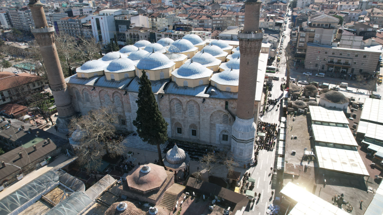 Ramazan ayının ilk cuma namazında Bursa'da camiler dolup taştı. Başta Ulu Cami olmak üzere kent genelindeki camilerde yoğunluk yaşandı. Cami içerisinde yer bulamayan vatandaşlar, namazlarını cami avlularında ve çevresinde saf tutarak eda etti. Yoğunluğun yaşandığı anlar havadan drone ile görüntülendi.