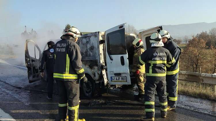 Minibüs sürücüsü Bilal A. Aracını yol kenarına çekerek araçtan indi. Bir anda motor bölümü alev alan minibüs yanmaya başladı. İhbar üzerine olay yerine itfaiye ekipleri sevkedildi. Bursa Büyükşehir Belediyesi ve Yalova Belediyesi itfaiye ekipleri araca müdahale ederek yangını kontrol altına aldı.