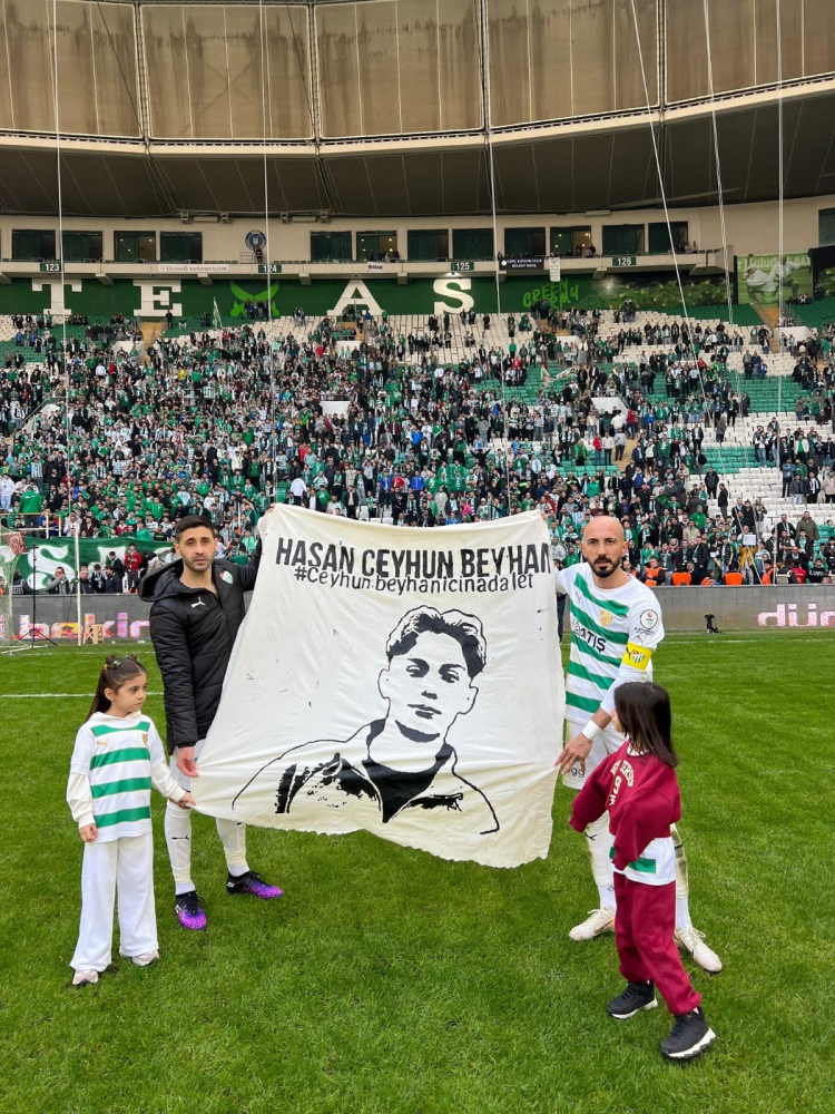 Bursa'da halı saha maçından çıktıktan sonra ticari aracın kendisine çarpması ile ağır yaralanan 17 yaşındaki Bursaspor sevdalısı Hasan Ceyhun Beyhan, hastanede verdiği yaşam mücadelesini 8'inci gününde kaybetti. Beyhan'ın cenazesi Baruthane Mezarlığı'nda defnedilirken geriye kazazede arkadaşıyla Bursaspor maçında çektirdiği hatıra fotoğrafı kaldı.