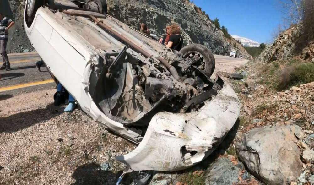 Kaza, Uludağ eteklerindeki Osmangazi ilçesi Karaislah köyü mevkiinde gerçekleşti. Edinilen bilgiyi göre, Bursa Keles yolunda ilerleyen 5 kişilik ailenin bulunduğu otomobil, Keles ilçesine 20 kilometre mesafede sürücüsünün bir anlık dikkatsizliğinin sonucu yol kenarındaki kayalara çarparak takla attı. Kazadan emniyet kemeri takan şoför burnu bile kanamadan kurtulurken, biri çocuk 3 kişi ise yaralandı. Takla atan aracı görenler, durup yardıma koştu.