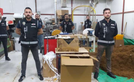 Yapılan aramada ise, 50 milyon adet sarılmış sigara, 6 ton 950 kilo tütün, 2 bin 485 adet boş sigara rulosu, 795 kilo tutkal, 103 palet karton ve piyasa değeri 1 milyon dolar olan 7 adet makaron doldurma makinesi ele geçirildi. Yapılan baskın sonucu ele geçirilen ürünlerin 100 milyon lira değerinde olduğu öğrenildi.