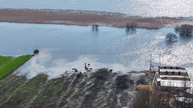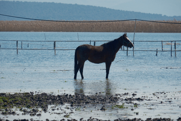 Uluabat Gölü, Bursa-İzmir kara yolunun kıyısına kadar gelirken bölgede bulunan milyonluk yarış atlarının bulunduğu tarlalar da su altında kaldı. Arap ve İngiliz yarış atları, su içinde gezinirken drone ile görüntülendi. Milyonluk tayların annesi olan damızlık atların büyük kısmının gebe olması da dikkat çekti.