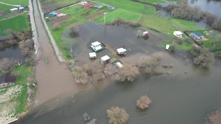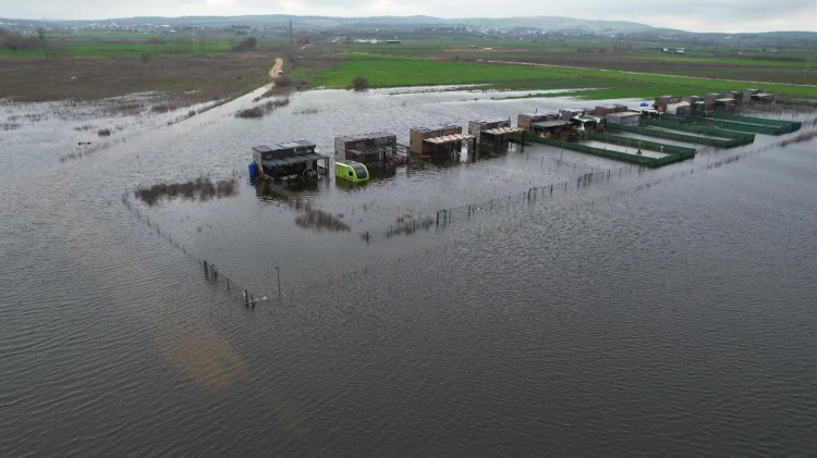Bursa'da Ulubat Gölü'nün taşmasıyla göle komşu Akçalar Mahallesi'nde onlarca tiny house ve hobi evi sular altında kaldı. Göl havzasının ne denli geniş bir alan yayıldığı havadan gözler önüne serildi.