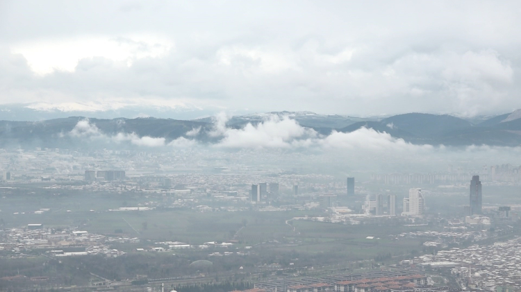 Havadan görüntülenen Bursa'nın bir kısmının karlı bir kısmının normal olması dikkat çekti.