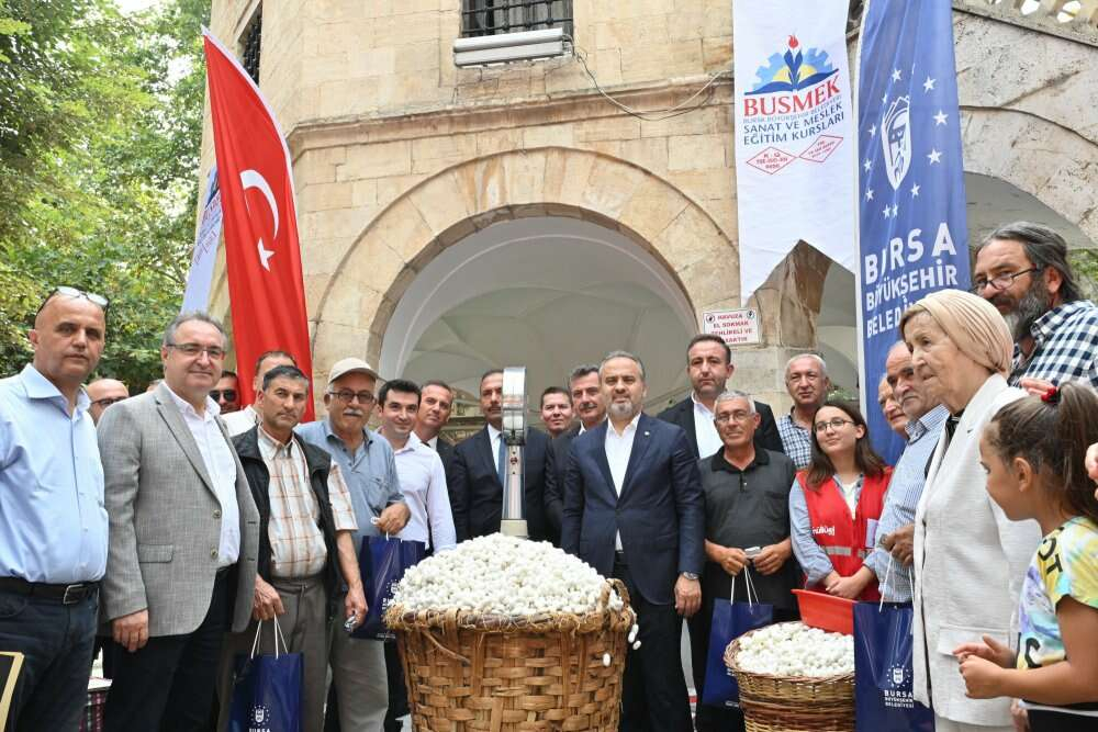 Festival çerçevesinde, yaklaşık 6 asır önce 2. Bayezid tarafından yaptırılan ve Osmanlı döneminde ipek ticaretinin merkezi olan Koza Han, koza mezadına ev sahipliği yaptı. Tarihi hanın kapısından atlarıyla giren temsili tüccarların alım-satım canlandırması, vatandaşları asırlar öncesine götürdü. Yaş ve kuru koza fiyatlarının ilan edilmesinin ardından mezat başlarken, pazarlıklara Büyükşehir Belediye Başkanı Alinur Aktaş da katıldı. Buradaki etkinliğin ardından festivalin açılış töreni, Orhangazi Parkı’nda gerçekleştirildi. Alanda hazırlanan çadır ve stantlarda yapılan ipek ürünler ile ilgili atölye çalışmaları, vatandaşlardan büyük ilgi gördü. İl Kültür ve Turizm Müdürü Kamil Özer, İl Tarım ve Orman Müdürü Hamit Aygül ile çok sayıda davetlinin katıldığı törende konuşan Büyükşehir Belediye Başkanı Alinur Aktaş, Osmanlı’ya başkentlik yapmış, uygarlıkların kesişme noktası olan Bursa’nın ‘geleceğini şekillendirmek üzere yola çıkanlara’ ilham veren şehir olduğunu vurguladı. Her kentin kendine özgü sembol değerleri olduğunu ancak Bursa’nın sembollerinin saymakla bitmeyeceğini ifade eden Başkan Aktaş, “Bursa’nın tarihsel varlığını sadece yapılarla sınırlamak mümkün değildir. Ticari geleneği ve bu geleneğin yansıması olan çarşıları, esnaf ve zanaat kültürü var. Örneğin bugün bizleri burada bir araya getiren, bir Asya simgesi iken uzun yollar aşıp Bursa’nın simgesi haline gelen ipeğimiz. Osmanlı döneminde Topkapı başta olmak üzere Avrupa saraylarını süsleyen Bursa ipeği, o kadar değerliymiş ki; Çin ve İran ipeklerinden vergi alan Avrupa, Bursa ipeğinden hiçbir zaman vergi almamış. Türk kültürünün en önemli değerlerinden olan Bursa İpeğinin yaşatılması ve gelecek kuşaklara aktarılması için gayret gösteriyoruz” dedi.