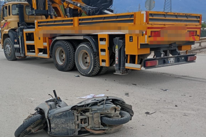 Vinç ile çarpışan motosiklet sürücüsü yaralandı
