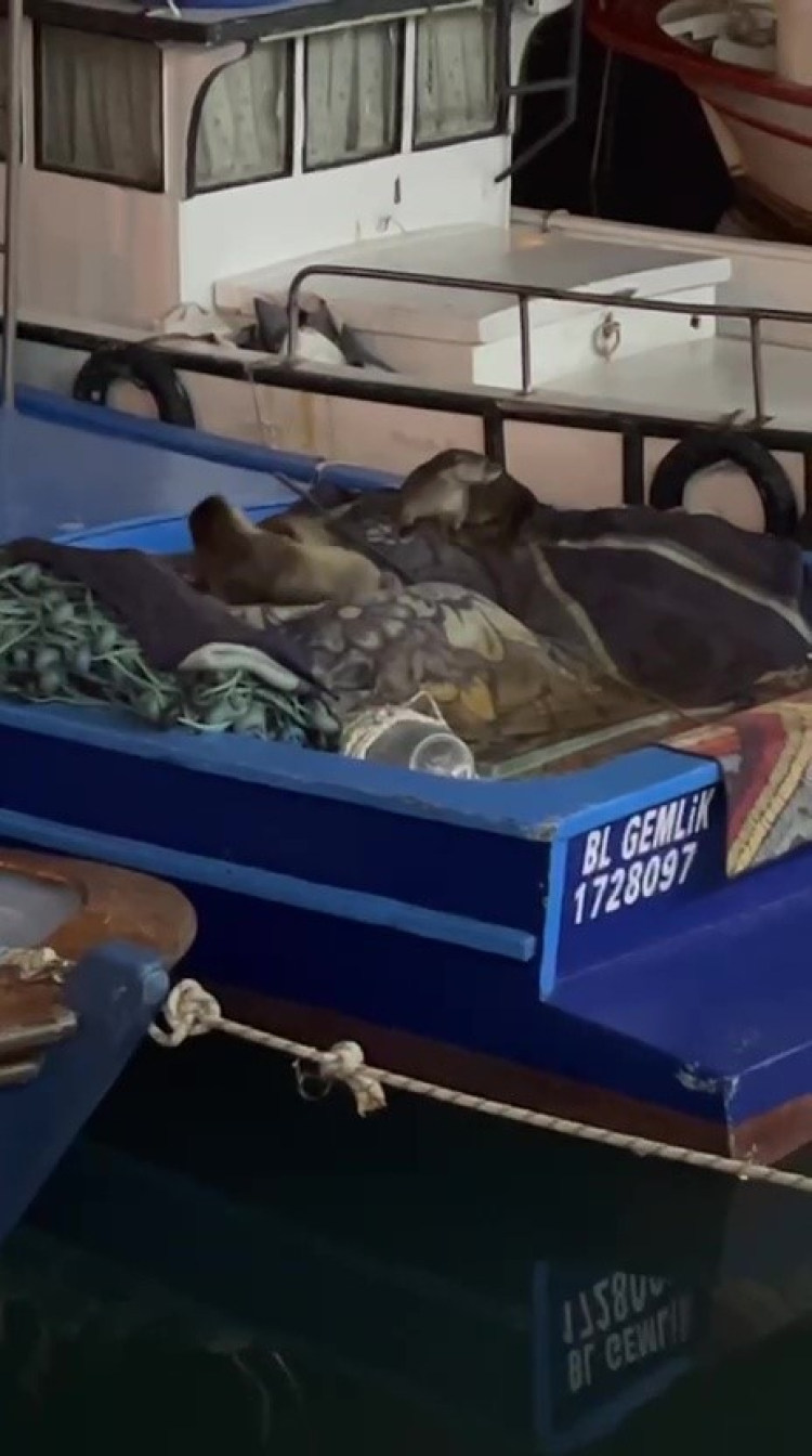 Gece saatlerinde limanda bulunan vatandaşlar, bir teknenin üzerinde hareketlilik fark etti. Yakından bakıldığında ise aç kaldıkları düşünülen anne su samuru ile yavrularının tekneye çıktığı görüldü. Bir süre tekne üzerinde dolaşan sevimli misafirler, limanda bulunanların ilgisini çekti.