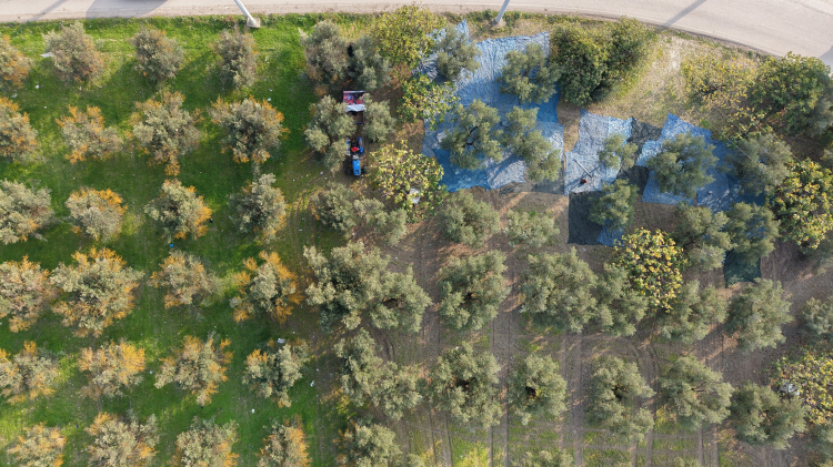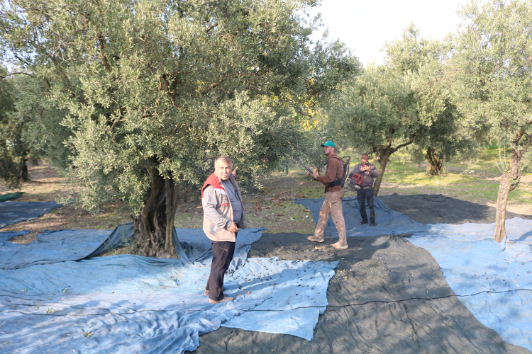 Konuşmaların ardından kooperatife ait zeytinliklerde hasat başladı. Zeytin ağaçlarının altına serilen mavi yaygılar, gökyüzünden bakıldığında halı desenini andıran etkileyici bir görüntü oluşturdu. Ağaçlar tek tek silkelenerek düşen zeytinler kasalara toplandı. Kaymakam Ayhan Terzi ve Marmarabirlik Başkanı Ali Yıldız da zeytin silkeleme makineleriyle hasada katılarak üreticilere destek verdi.