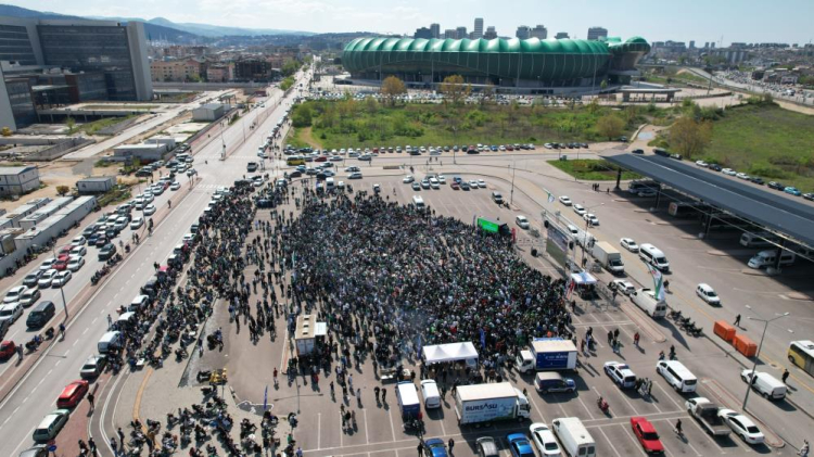 TFF 3. Lig'in 28. hafta mücadelesinde Bursaspor, Balıkesir'de Artvin Hopaspor ile karşı karşıya geldi. Maçın ilk yarısı 1-1 berabere tamamlanırken, yeşil-beyazlı ekip galip gelmesi durumunda şampiyonluğunu ilan edecek. Taraftarlar için Bursa'nın çeşitli yerlerine dev ekranlar kurulurken, Acemler İstasyonu Otoparkı'na kurulan dev ekranda da Bursalılar maçı takip etti. Şampiyonluk coşkusu ile ellerinde atkıyla alana gelenler maçın ikinci yarısını heyecanla bekliyor. Yüzlerce taraftarın oluşturduğu kalabalık dron ile havadan görüntülendi.