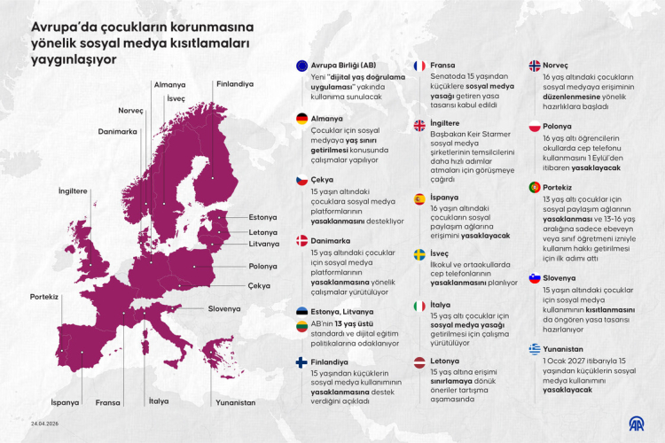 Sosyal medyada uygunsuz içeriklere maruz kalmaları, bağımlılık riski ve ruh sağlığı üzerindeki menfi etkiler, çocuklara yönelik sosyal medya kısıtlamalarını Avrupa’da giderek daha fazla ülkenin gündemine taşıyor.