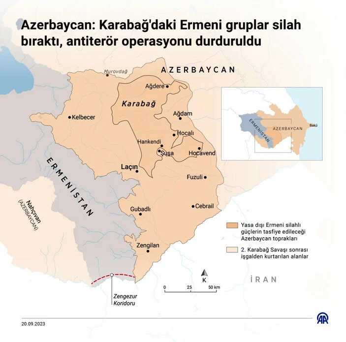 Azerbaycan, 2020'de yapılan ateşkes anlaşmasında ve Ermenistan'ın taahhüdünde yer aldığı üzere Azerbaycan toprağı olarak kabul edilen Karabağ'da anayasal düzeni sağlamak ve yasa dışı silahlı grupları temizlemek için antiterör operasyonu başlattı.