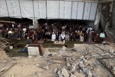 Gazze Şeridi'ndeki Filistinliler, 7 Ekim 2023'ten bu yana devam eden İsrail saldırılarında yıkılan camilerin enkazı üzerinde bayram namazlarını kıldı.