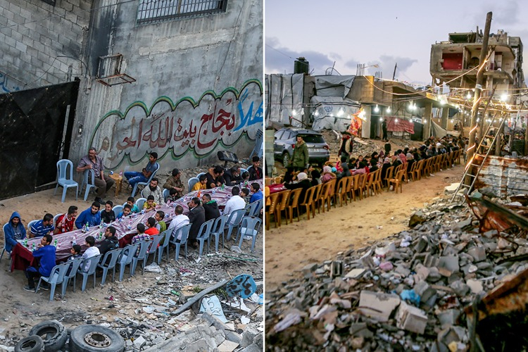 2019'da İsrail saldırılarında yıkılan evlerin molozları arasında verilen iftar yemeği ile yıllar sonra Gazze'nin kuzeyindeki Muhabarat bölgesinde yerinden edilmiş Filistinliler için kurulan iftar sofraları, benzer bir tabloyu yansıtıyor.