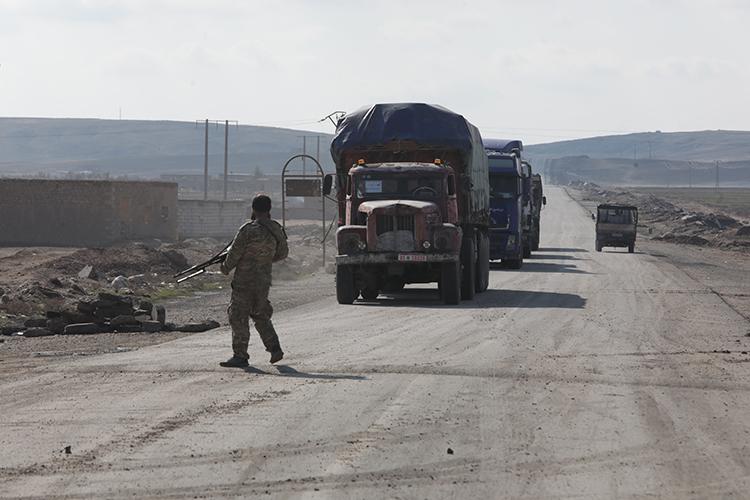 BM araçlarının eşlik ettiği 23 kamyonluk gıda malzemesini Kamışlı'ya ulaştıran yardım tırları, terör örgütü YPG'nin işgalindeki bölgelerden geçerek Suriye hükümetinin kontrolündeki bölgelere doğru hareket etti. Aynı şekilde, başkent Şam'dan yola çıkan 10 gıda yüklü yardım tırı BM eşliğinde YPG'nin işgalindeki Haseke, Kamışlı hattına doğru ilerledi.