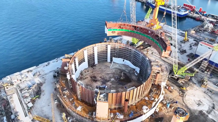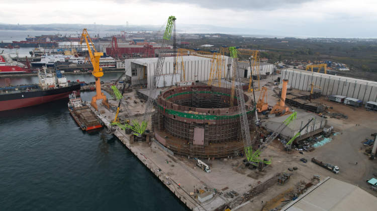 “Bu son parçanın montajıyla beraber, toplam havuzun ağırlığı 7 bin tona yaklaştı ve havuzun inşasını Türkiye’de tek ve en büyüğü 1600 tonluk paletli vinçle ve 800 tonluk paletli vinçle bitirmiş bulunmaktayız. Özellikle şunu belirtmek istiyorum. Bu tarz vinçlerin Türkiye’mize girmesiyle daha büyük daha çaplı projeler yapılmaya başlandı. Bunun en güzel örneklerinden birisi Akkuyu Nükleer Santral Projesi.”