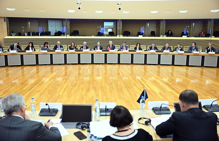 Ticaret Bakanı Ömer Bolat, Brüksel'de AB Komisyonu binasında düzenlenen Türkiye-AB Yüksek Düzeyli Ticaret Diyaloğu Toplantısı'nın açılışında konuştu.