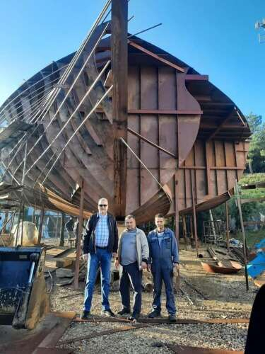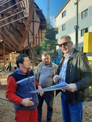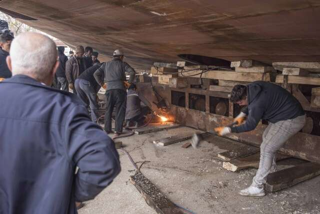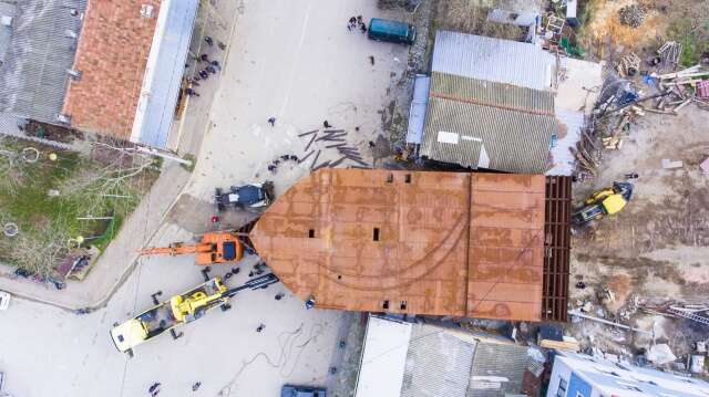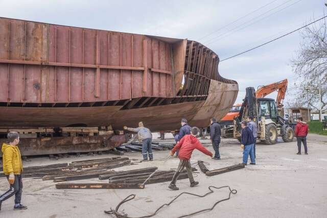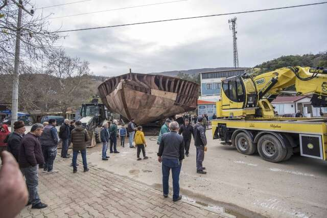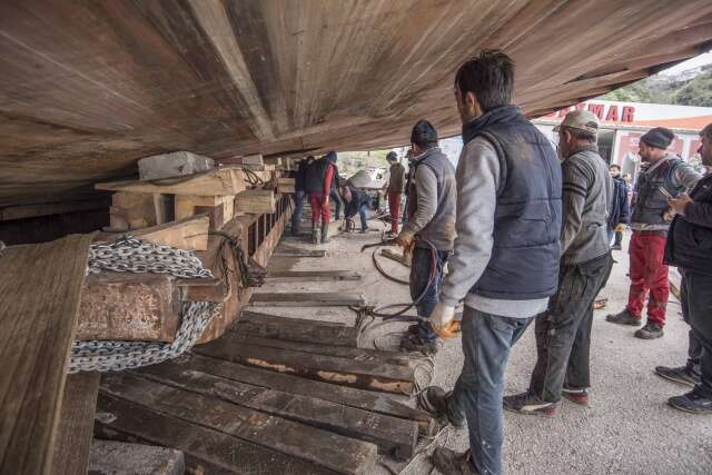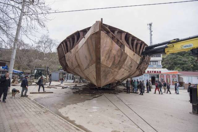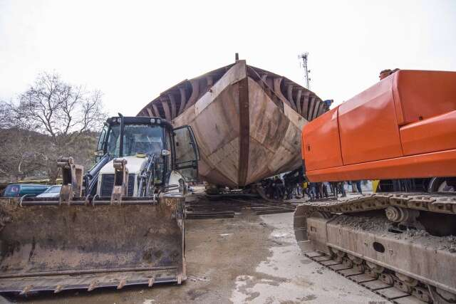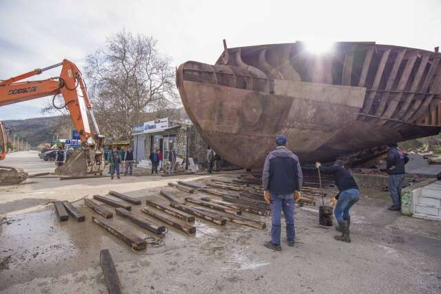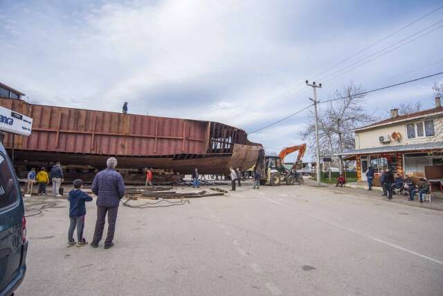 Devasa tekneyi karadan yürütüp sahile böyle taşıdılar